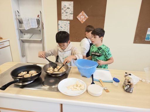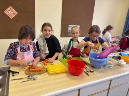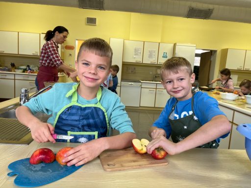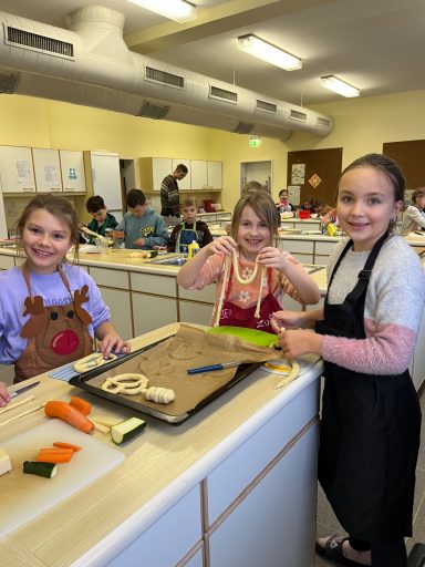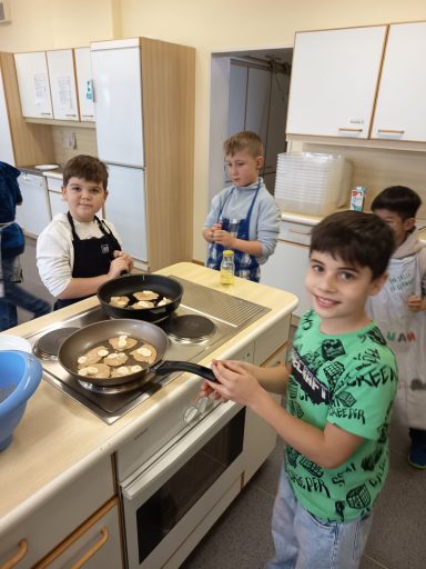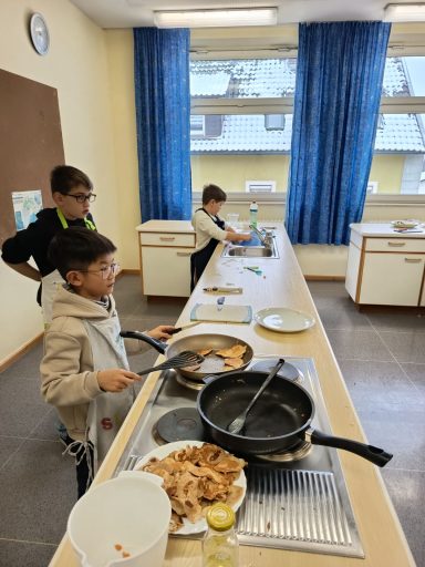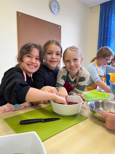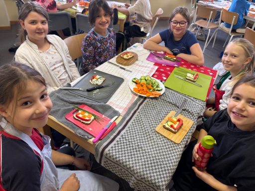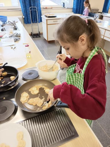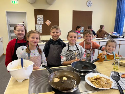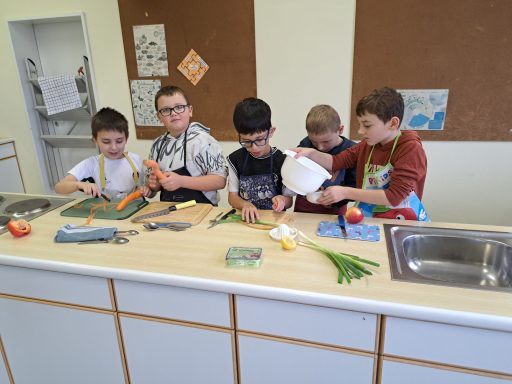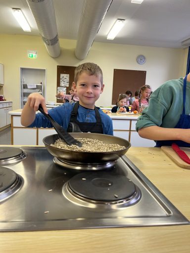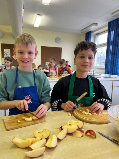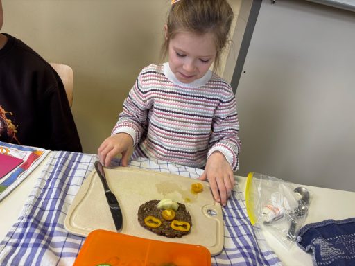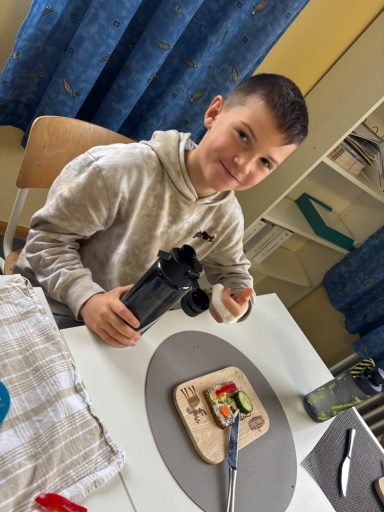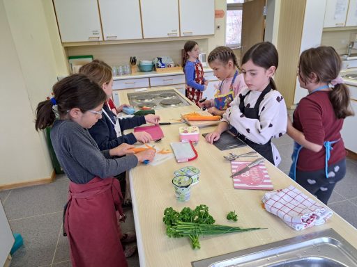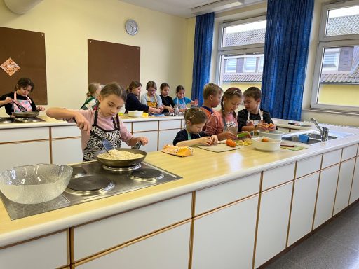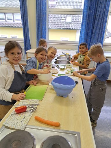 In den dritten Klassen war es dieses Jahr wieder soweit. Zeit für das Ernährungsprojekt, bei dem die Kinder lernten, welche Speisen ihrem Körper guttun und welche man meiden, bzw. reduzieren sollte. Frau Pöhlmann brachte den Kindern wichtige Grundlagen der Ernährung bei und ließ sie anschließend auch selbst Speisen zubereiten. Beispielsweise gab es eine Frühstücks-Bowl oder lustige Brotgesichter mit Frischkäse, Schnittlauch, Karotten, Paprika und Gurken. Sogar Pilze aus unserer Pilzebox konnten wir gleich dafür verwenden.