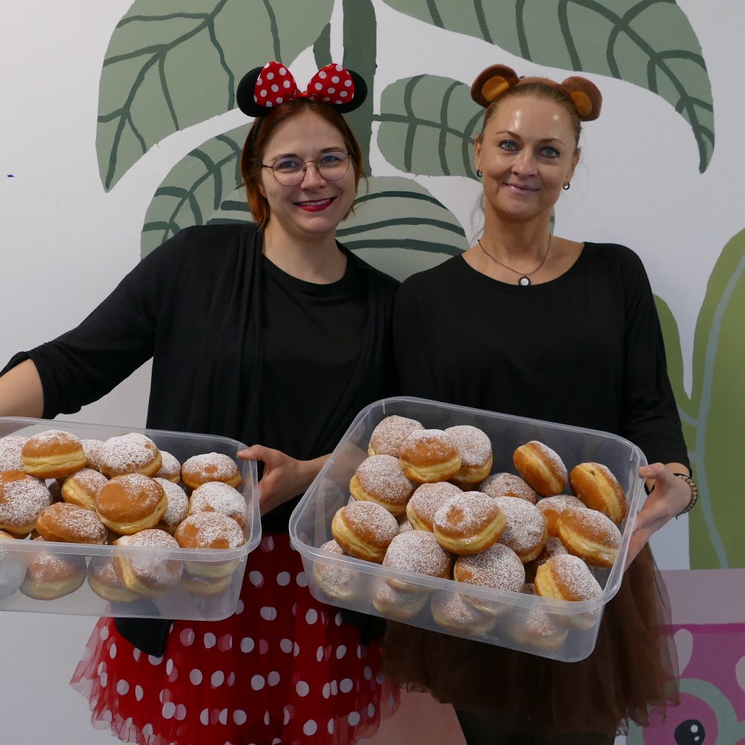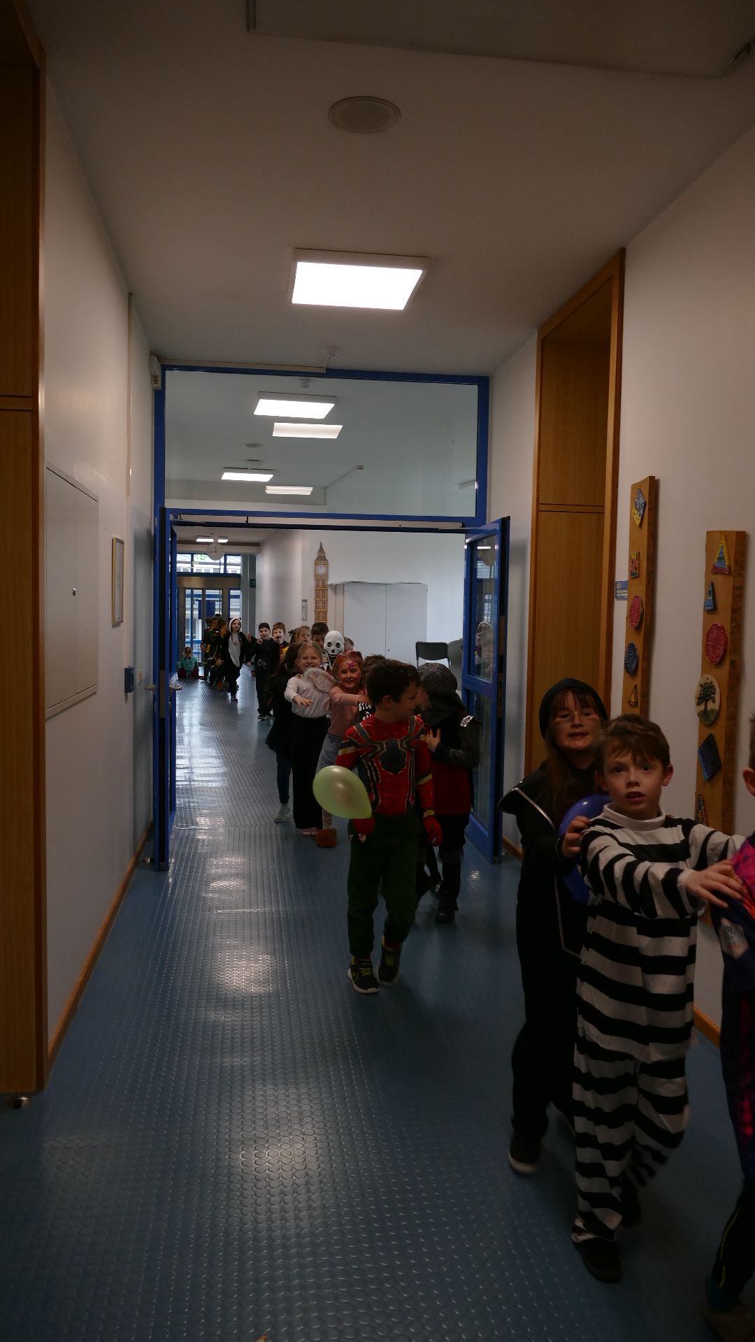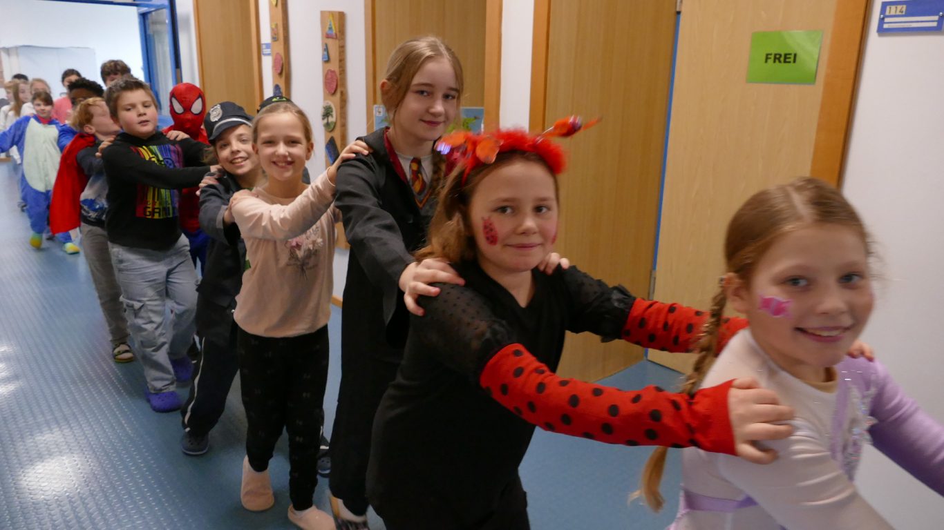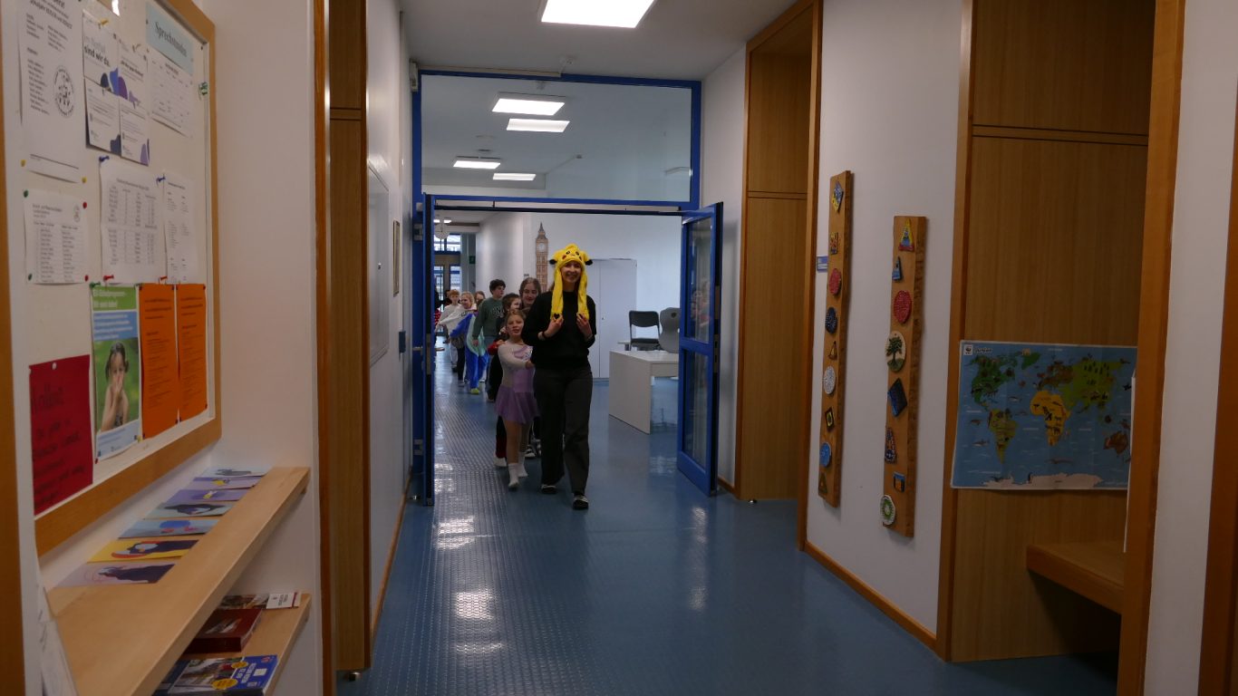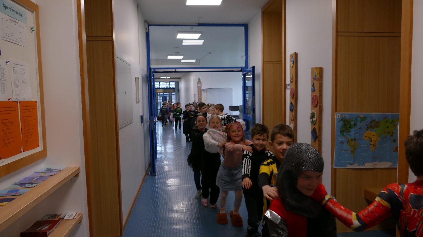 Ein herzliches Danke an unseren Elternbeirat, der wieder für alle Schüler Krapfen lieferte. Diese ließen wir uns schmecken und im Anschluss gab es noch eine lustige Polonaise quer durch Schulhaus.