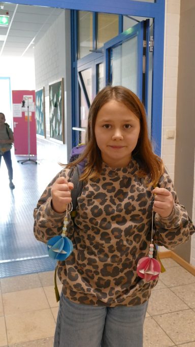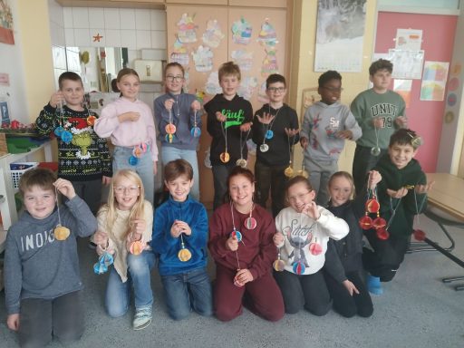 Bei den Viertklässlern wurden zum Beispiel quietschbunte, aber auch edle Kugeln in silber und Gold für den Weihnachtsbaum oder als hübsches Geschenk gebastelt. Ein Hingucker sind die Metall- bzw. Holzperlen am Aufhänger. Manche schafften sogar mehrere Kugeln.