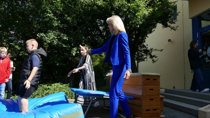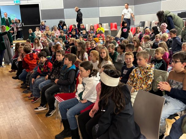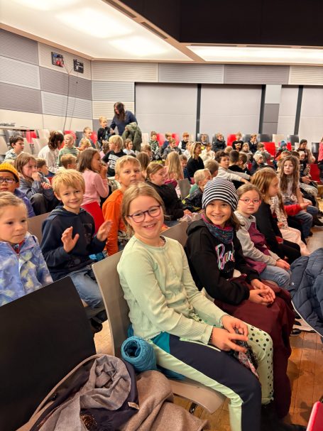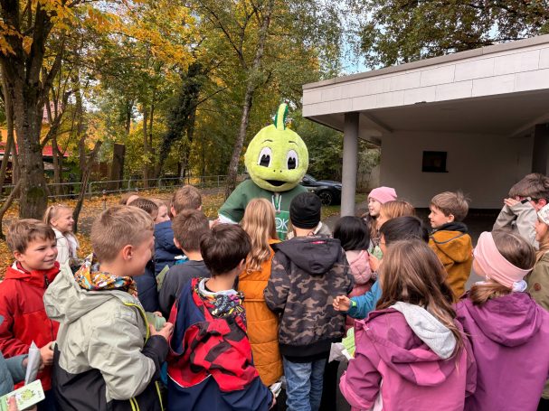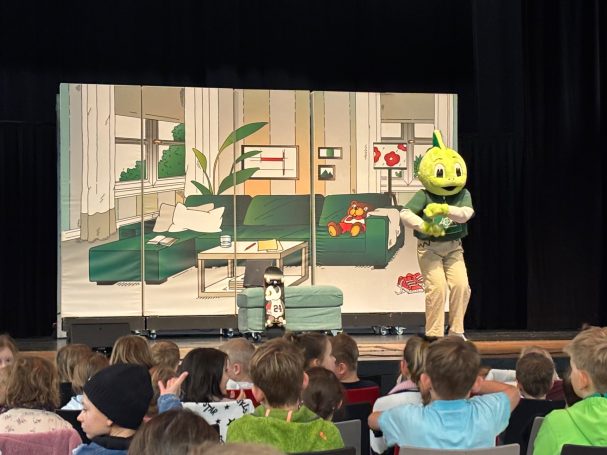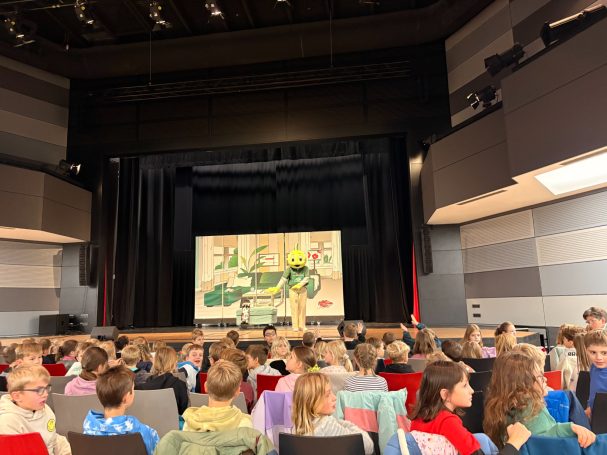 Am 16.10.2025 machten sich alle Drittklässler mit dem Bus auf den Weg ins Zentrum in Bayreuth. Dort wurden wir vom Team der AOK empfangen und lernten im Theater viel über Nachhaltigkeit. Nach einem Warm-up mit AOK Maskottchen Jolinchen startete das Theaterstück mit viel Witz, Liedern und Gedanken zur Nachhaltigkeit. Mit Begeisterung waren alle Kinder dabei. Am Ende bekamen die Schüler noch Brotzeitdosen, Straßenmalkreiden oder eine Frisbee sowie leckere Apfelchips.