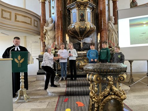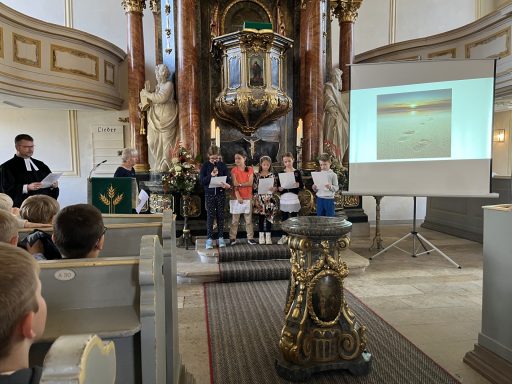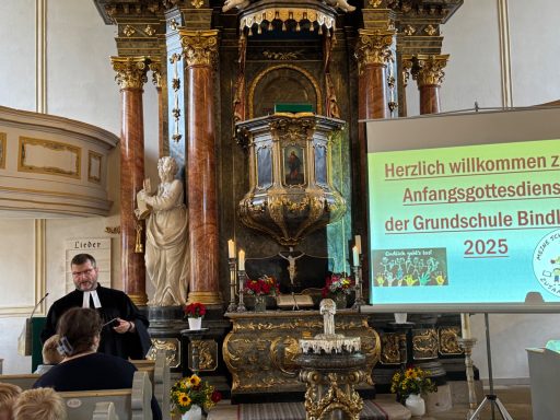 Am Mittwoch, 31.7.25, fand der Abschlussgottesdienst der Klassen 1 und 2 in der Bartholomäuskirche statt. Er hatte das Motto “ Da hat Gott mich getragen”. Den Kindern wurde dieses Motto mit Hilfe einer Geschichte, einem Rückblick auf das vergangene Schuljahr und einer kurzen Ansprache von Pfr. Grömer näher gebracht. Danke an alle, die mitgewirkt haben.