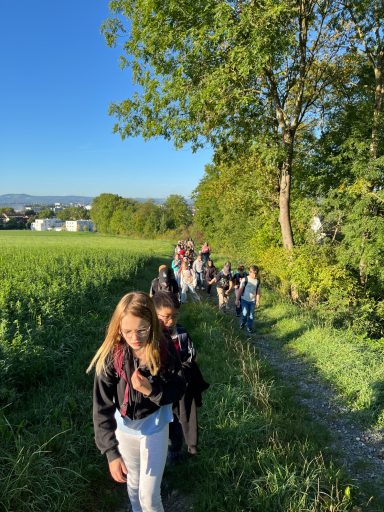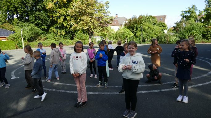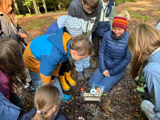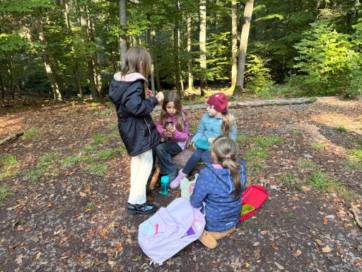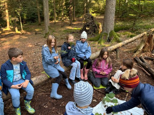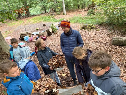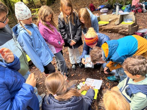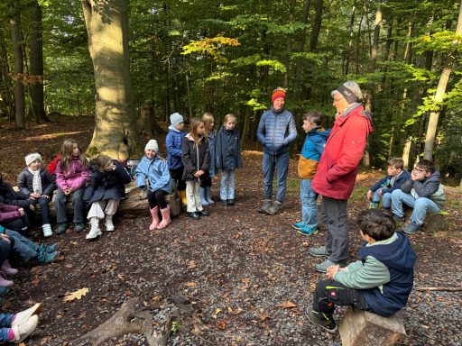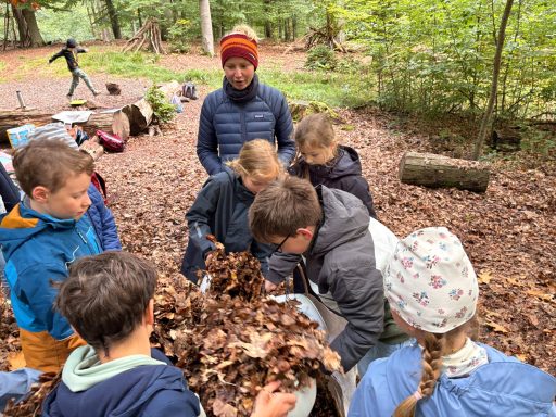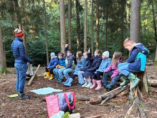 Am Mittwoch, den 1.10. verbrachte die Klasse 3b drei Stunden Zeit im Wald bei der Bürgerreuth. Dabei gestalteten zwei Biologinnen das Programm für die Kinder. Die Schüler lernten vieles über die Bäume und ihre Früchte, die Pilze und was mit den Blättern im Herbst passiert. Bei Spielen durften sie Nüsse verstecken wie ein Eichhörnchen und ihr erlerntes Wissen anwenden. Ein schöner Tag im Wald!