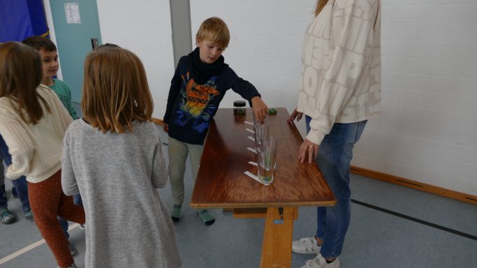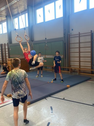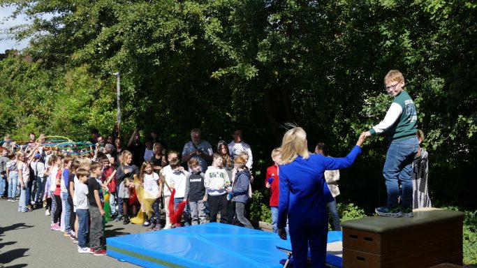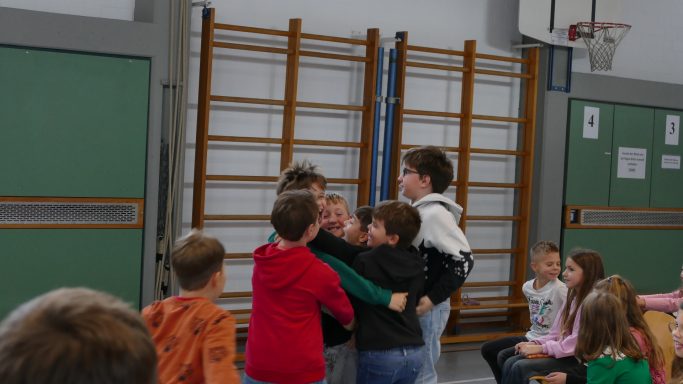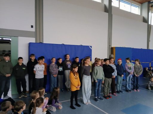 Die Schüler der Klasse 4b waren in ihren Gruppen kreativ und haben sich selbst Geräte & Choreografie für ihren Part in der Zirkusvorstellung ausgesucht.
