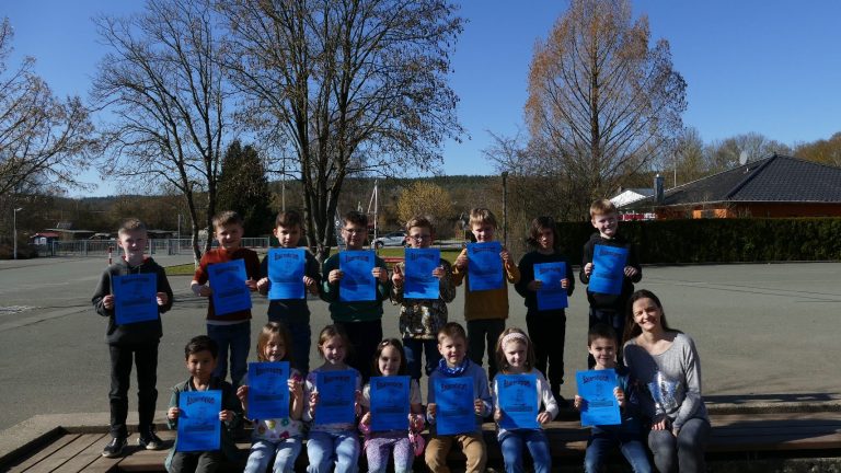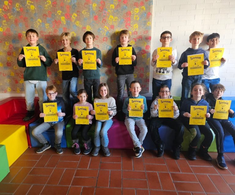 Die Viertklässler der Schach AG haben ihr Turmdiplom bestanden und präsentieren es stolz.