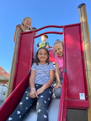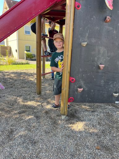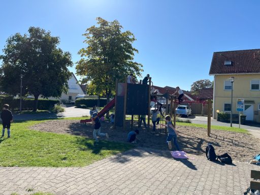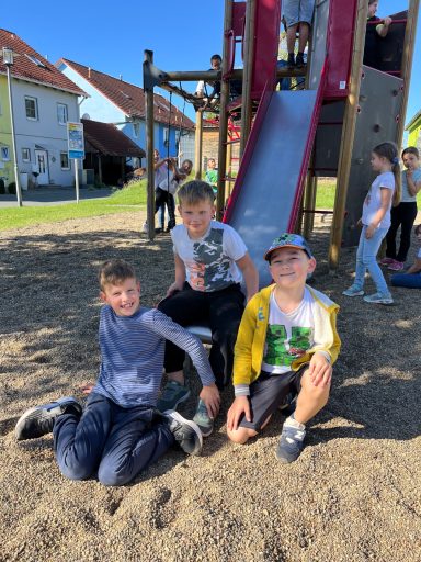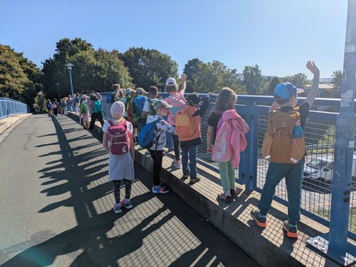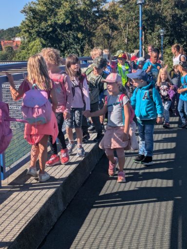 Das Ziel am ersten Wandertag für die neuen Erstklässler war der Spielplatz in Crottendorf. Mit großem Spaß winkten sie auf dem Weg den Auto- und LkW-Fahrern von der Brücke aus und freuten sich über jedes Hupen. Am Spielplatz angekommen war für alle etwas dabei: Schaukeln, Klettern, Rutschen, Fußball Spielen oder einfach nur im Gras relaxen.