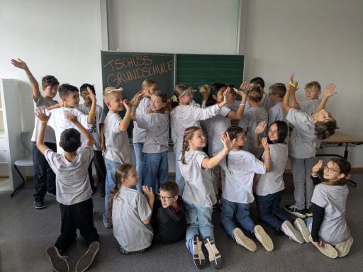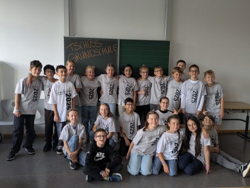 Mit extra Abschlusstshirts verlässt uns die Klasse 4b. Viel Erfolg an euren neuen Schulen!