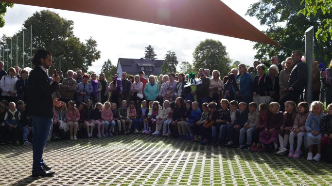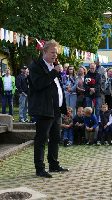 Da wir in diesem Jahr stellvertretend für alle Landkreisschulen die Übergabe der Kinder- Sicherheitsdreiecke durchführten, waren als Ehrengäste der Landrat Herr Wiedemann, unser Schulamtsdirektor Herr Riedel, der 2. Bürgermeister Herr Jaunich und der Vorsitzende der Verkehrswacht Bayreuth Herr Hübner-Heinze dabei.