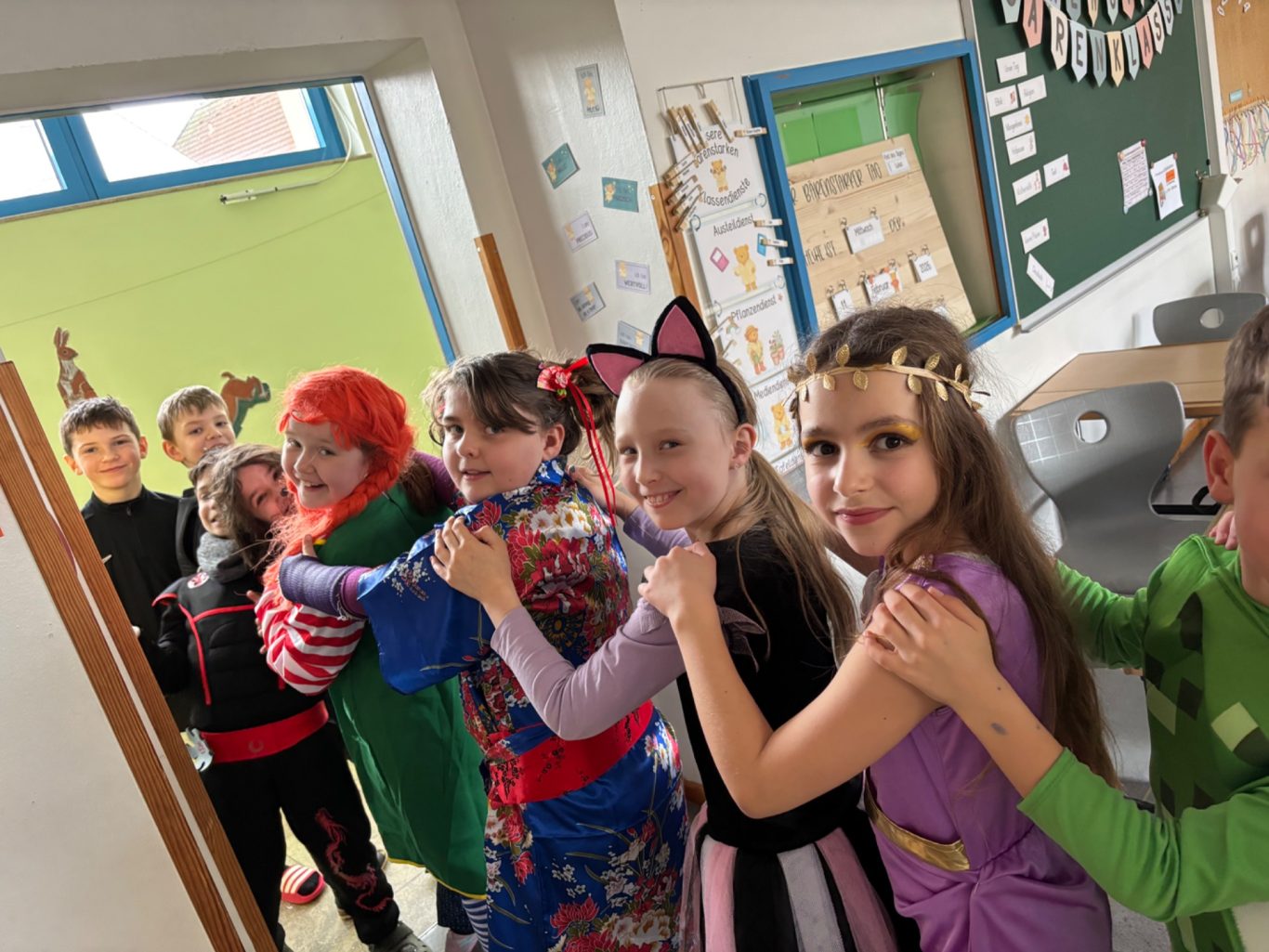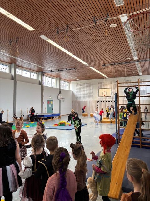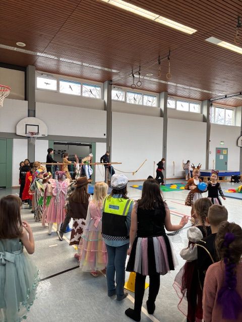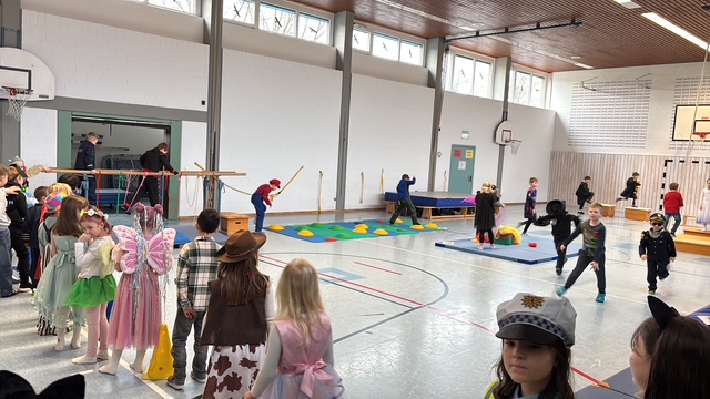 Die 1. und 2. Klassen ließen es in der Schule rundgehen bei Faschingsparcours in der Turnhalle, Bastelstationen und vielen anderen Angeboten.
