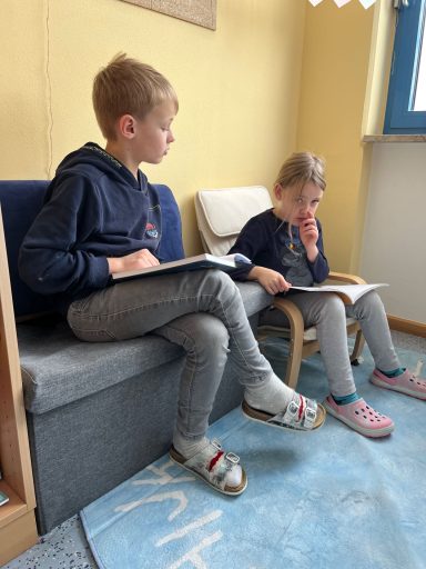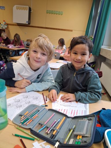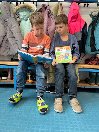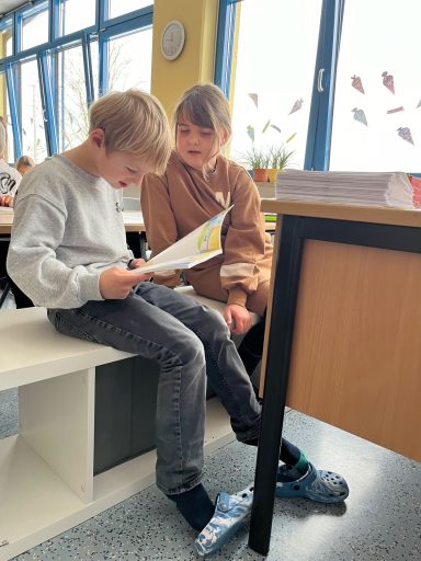 Am Montag, den 24.11.2025 trafen sich die Klassen 1c und 3c zu einer besonderen Vorlesestunde. Zuerst lasen die 3. Klässler ihren Patenkindern etwas aus ihren Lieblingsbüchern vor. Die Erstklässler hörten aufmerksam zu, stellten neugierige Fragen und ließen sich von den spannenden Geschichten mitreißen. Am Ende der Stunde wurde getauscht und auch die 1. Klässler bewiesen ihren Paten, dass sie auch schon kurze Geschichten vorlesen können. Alle waren sich am Ende einig, dass diese gemeinsame Zeit ein schönes Erlebnis war – und dass die nächste Vorlesestunde nicht lange auf sich warten lassen sollte!