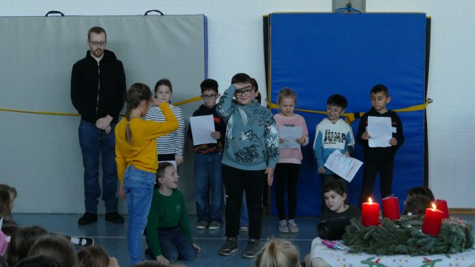 Die Klasse 4c bekam viel Applaus für ihr schönes Gedicht über eine trotzige Adventskerze. Diese wollte leider zuerst nicht brennen, entschied sich dann aber dank eines Engels glücklicherweise doch noch um.