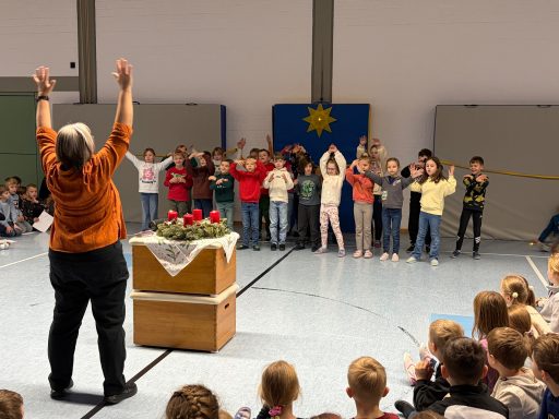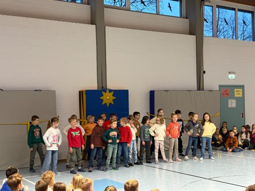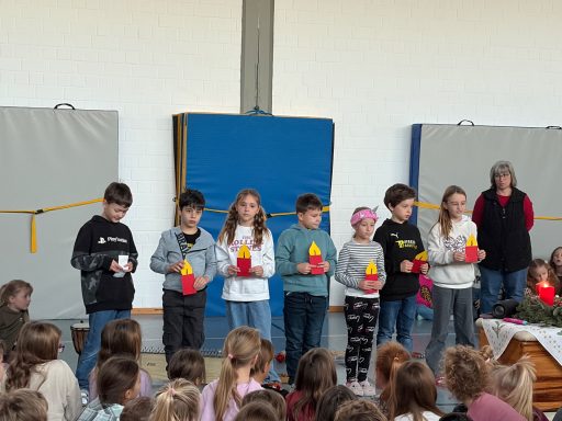 Am 10.12. wurde unsere wöchentliche Adventsandacht von den dritten Klassen gestaltet. Diesmal begeisterte die 3a mit schauspielerischen Einlagen zum Thema "Liebe" und wo man sie überall sehen kann. Die Klasse 3c sang das Lied "Weihnachtsfest, wir wollen viel singen" und begleitete mit Orffinstrumenten. Zitate zum Thema Liebe auf schönen Tonpapierkerzen waren der Beitrag der Klasse 3b.