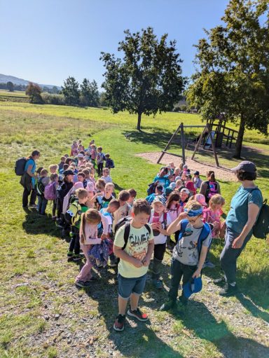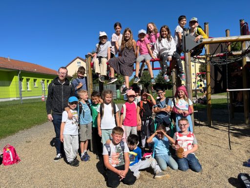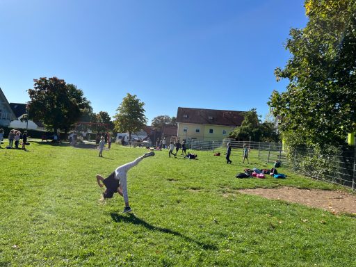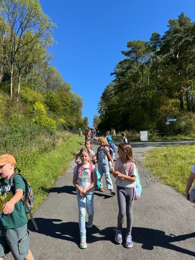 Am Freitag, den 19. September, hatten die dritten Klassen richtig Glück mit dem Wetter beim Wandern: strahlender Sonnenschein den ganzen Tag! Zuerst wurde zum Bergkreuz auf dem Bindlacher Berg gewandert. Dort gab es eine leckere Brotzeit und natürlich auch Zeit zum Spielen und Austoben. Nach einer kleinen Pause ging es weiter zum Spielplatz am Bindlacher Berg. Hier konnte noch einmal ausgiebig gegessen, geklettert, gerutscht und miteinander gespielt werden, bevor bei herrlich spätsommerlichem Wetter schließlich wieder Richtung Schule ging. Es war ein toller Tag voller Sonne, Spaß und Bewegung!