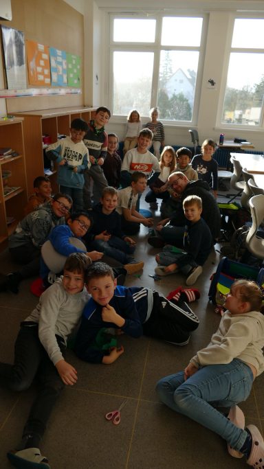 Am Freitag, 21.11.25 machte sich die 2c nach Bayreuth auf, um im Rahmen des bundesweiten Vorlesetages die Klasse 10d des RWG zu besuchen. Nach der Ankunft wurde zuerst den Zweitklässlern das Buch „Das Parlament der Tiere“ von den Zehntklässlern vorgelesen und anschließend dessen Bedeutung erklärt. Im Anschluss daran wurde gemeinsam eine Pause gemacht und es erfolgte ein Rundgang durch das RWG. Danach lasen einige Schülerinnen und Schüler der 2c der 10. Klasse das Buch „Das kleine Wir in der Schule“ vor und es wurde in Gruppen herausgearbeitet, was das kleine Wir im Schulalltag stark macht. Leider war dann die Zeit in Bayreuth schon zu Ende und glücklich wurde die Rückreise angetreten. Vielen lieben Dank an die 10d des RWG und deren Deutschlehrer Herrn Florian Dörfler.