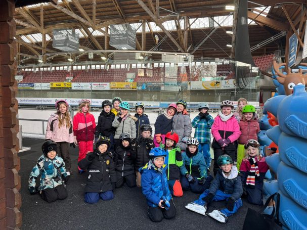 Gemeinsam ging es für die Schülerinnen und Schüler der Klasse 1c und 2c am Dienstag, den 02.12.2025 auf die Eisfläche. Die Aufregung war groß, doch dank der tatkräftigen Unterstützung eines Trainers, der den Kindern half, sich sicher auf dem Eis zu bewegen, hatten alle schnell den Dreh raus. Die Zeit verging wie im Flug und am Ende waren sich alle einig: Es war ein toller Vormittag, der allen noch lange in Erinnerung bleiben wird.