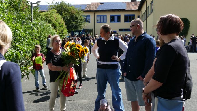 Während die Kinder danach mit ihren Klassenlehrerinnen Frau Zimmer, Frau Kurz und Frau Nützel ihre erste Schulstunde im Klassenzimmer erlebten, wurden die Eltern und Verwandten in bewährter Weise vom Elternbeirat mit Kaffee und Kuchen verwöhnt.