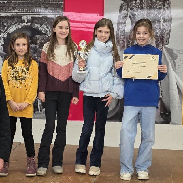 Alle Kinder und Eltern waren pünktlich zur Abfahrt nach Coburg. Dann ging es weiter nach Neudrossenfeld. Dort kamen die Kinder und Eltern aus der Friedrich-von-Ellrodt-Schule zu uns in den Bus. Um 09:30 Uhr waren wir in Coburg. Das Turnier begann um ca. 10:15 Uhr. Nach Runden 4 wurde eine Pause von 45 Minuten gemacht. Um ca. 15:45 Uhr war Turnierende. Anschließend fand die Siegerehrung statt. Unsere 1. Mannschaft wurde Ofr. Vize-Meister! Unser Mädchen-Team wurde Ofr. Meister! Der Coburger Bayerische Schachpräsident, Ingo Thorn überreichte die Pokale und Urkunden an unsere beiden erfolgreichen Mannschaften! Herzlichen Glückwunsch, auch im Namen der Schulleitung und der Gemeinde Bindlach! Auch alle anderen teilnehmenden Mannschaften aus der GS-Bindlach spielten ein sehr gutes Turnier! Unsere Mannschaft GS-Bindlach 7 ( 2. Klasse ) spielte ihr erstes Turnier und erreichte Platz 11. Das war auch eine „Superleistung“! Ein herzliches Dankeschön an alle Eltern, die mit in Coburg dabei waren und unsere Kinder während des Turniers mit betreuten! Danke auch an Stefan Schröder, der als einer der Schiedsrichter bei den GS-Meisterschaften unterstützt hat! Alle Kinder bekommen noch eine Urkunde vom Turnier überreicht.